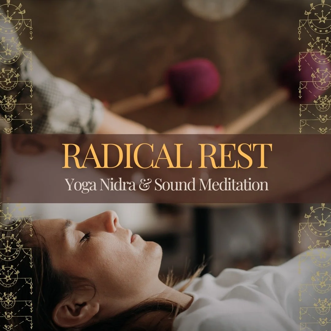 Radical Rest is a nourishing relaxation experience combining Yoga Nidra (guided yogic sleep) with a healing sound bath. This gentle yet powerful session invites your body and nervous system into deep rest, helping to release stress, calm the mind, and restore balance.